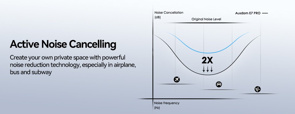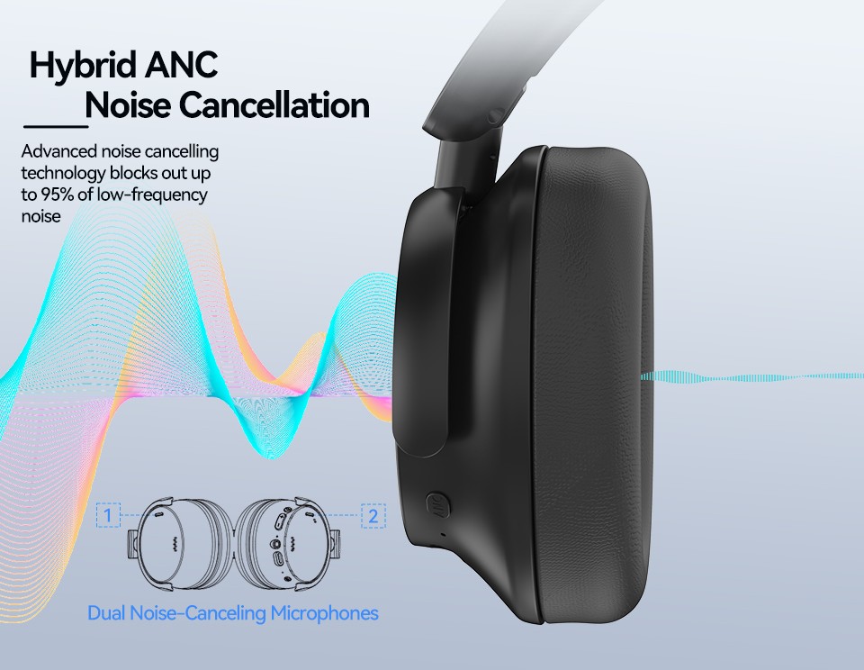 - Hybrid Active Noise Cancellation & ENC Mics: Featuring a hybrid ANC algorithm, AUSOM noise canceling headphones deliver exceptional noise control across low & mid-frequency ranges. Whether it's the roar of aviation, car engines, subway rumble, or other annoying background noises, it effectively minimizes noise interference, ensuring an unparalleled listening experience. The excellent ENC microphones make it possible for you to get crisp, clear calls even in noisy environments