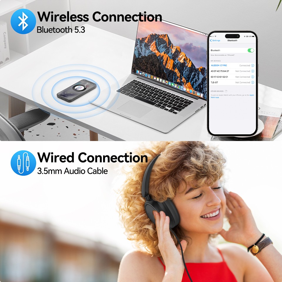 - Immersive Hi-Fi Audio: Equipped with dual professional 40-mm acoustic drivers and advanced audio signal processing technology, significantly reducing loss in sound quality and restoring the essence of sound, resulting in a more refined and immersive audio experience. Plus, it breaks the single connection method, and supports both wireless and wired connections. Get ready to enjoy the best sound performance with the wireless over-ear headphones
