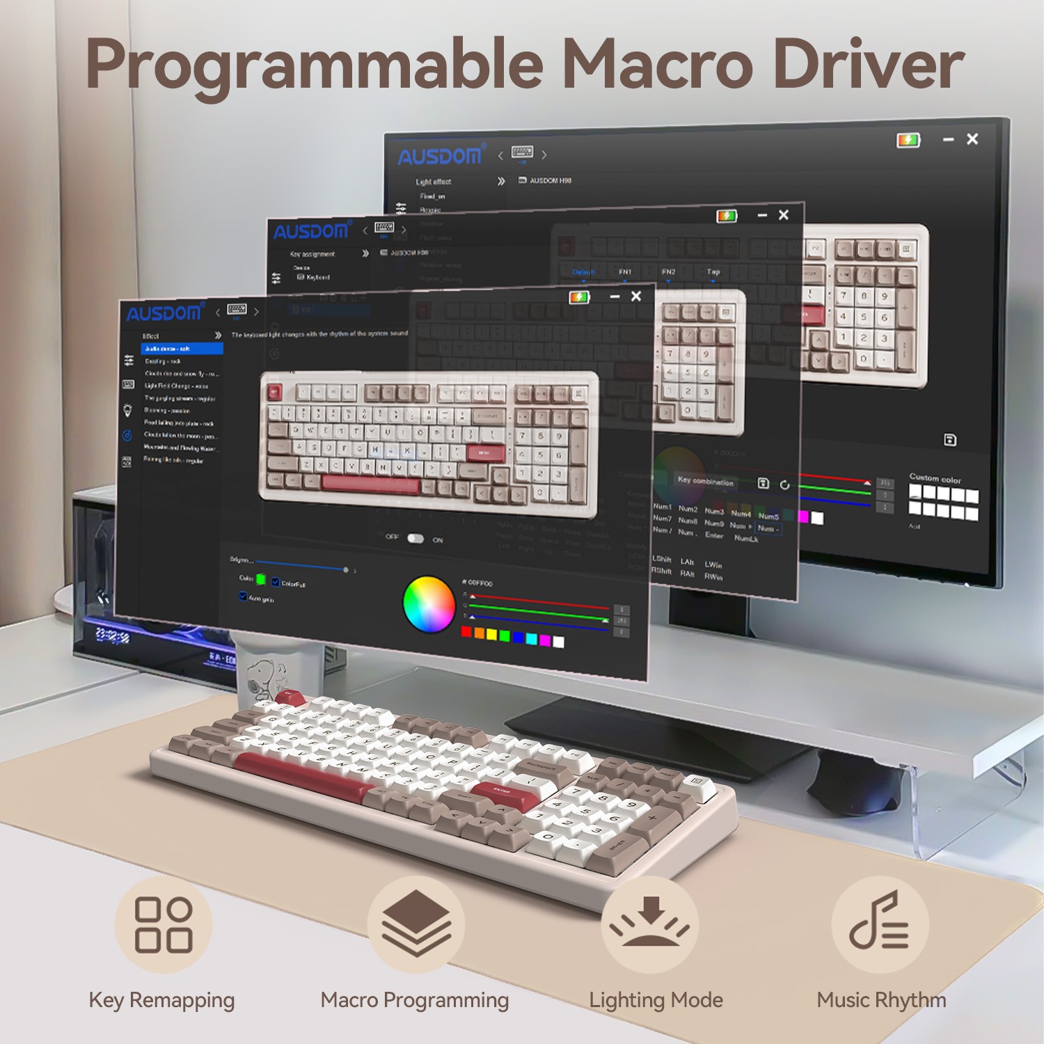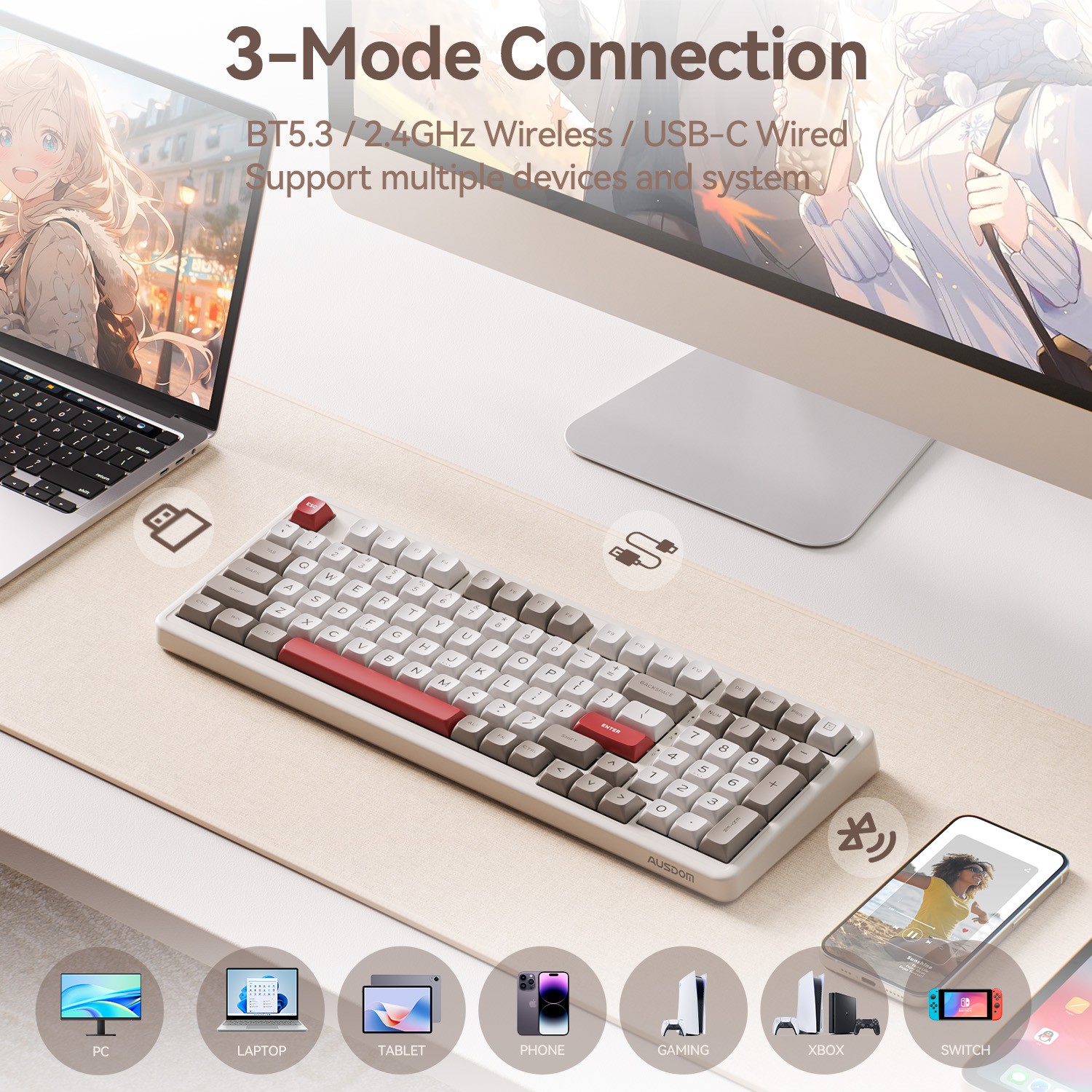 - 6-Layer Gasket Structure & Low Latency: This wireless gaming keyboard features innovative 6-layer gasket structure. Combined with high-quality acoustic foam, effectively dampens vibrations and noise to provide a satisfying and comfortable typing experience. Equipped with AUSDOM’s proprietary DSP ultra-low latency technology, achieving an industry-leading 2ms response time. Perfect for competitive gamers who demand absolute precision and a tactical advantage.
