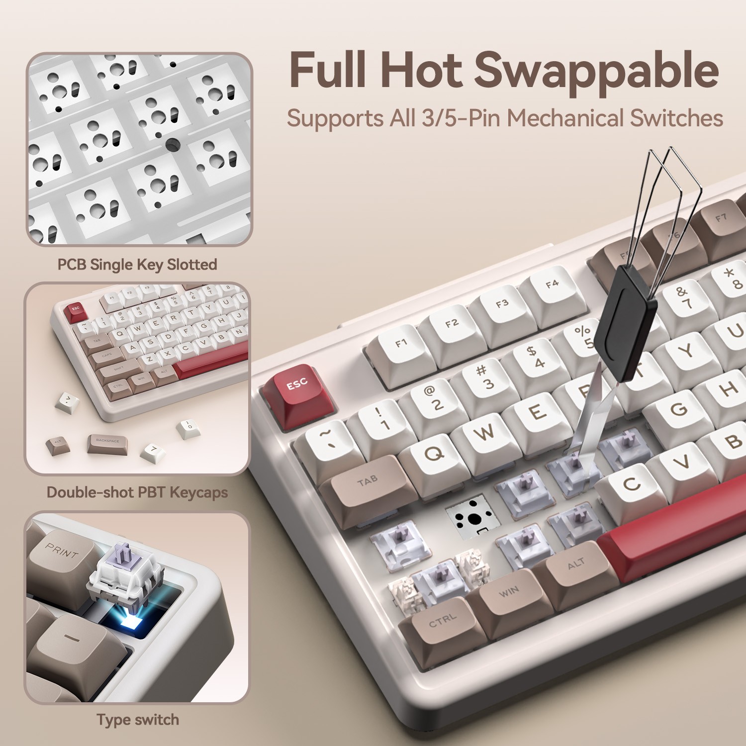 - Hot-swappable & Programmable: The hot-swappable mechanical keyboard features a single-slot PCB construction for enhanced stability and durability, and allows you to easily replace 3/5 pin switches without soldering. Take full control with software customization: remap keys, customize dynamic RGB lighting, and let RGB backlighting dance to your favorite beats. Perfect for DIY enthusiasts and professionals seeking ultimate customization.