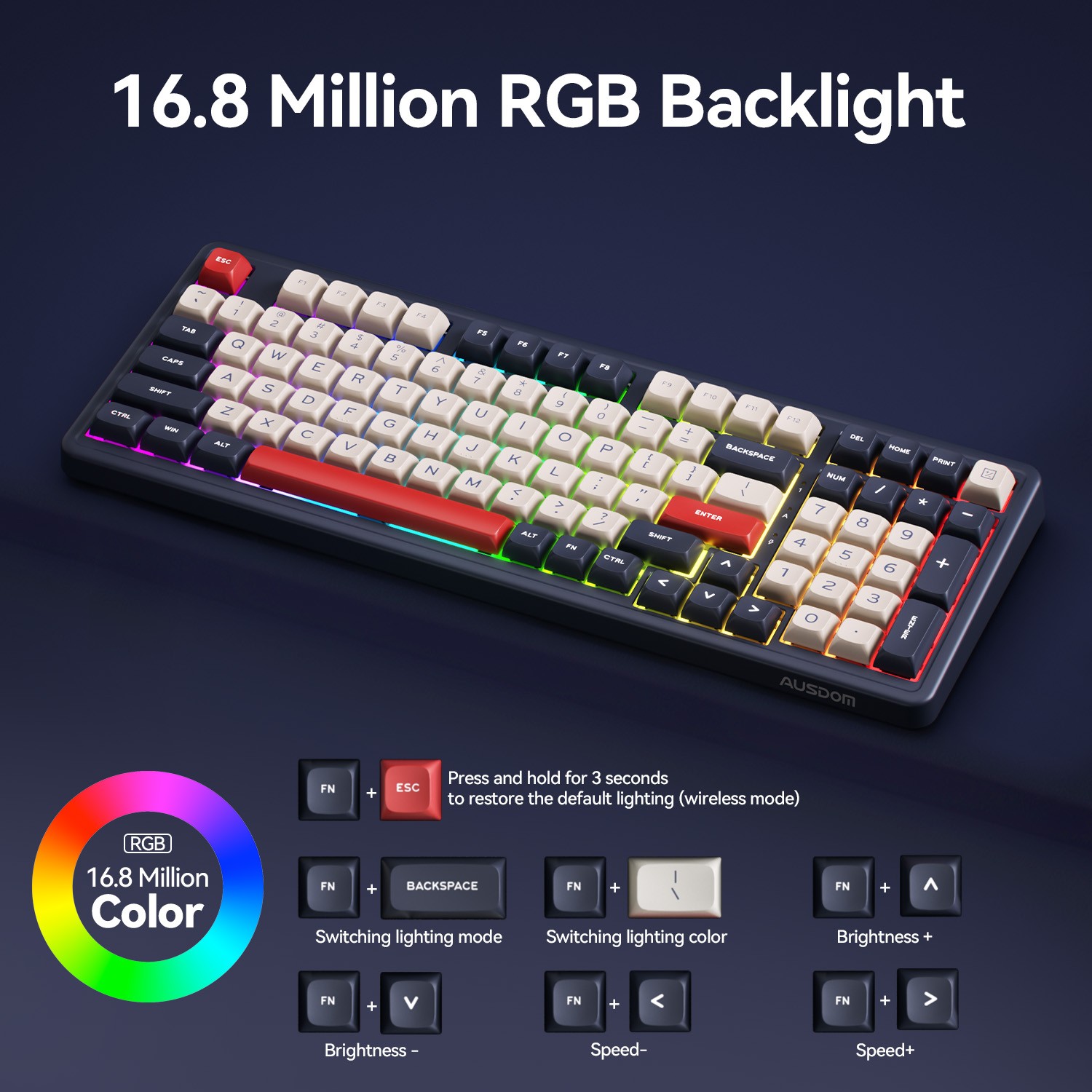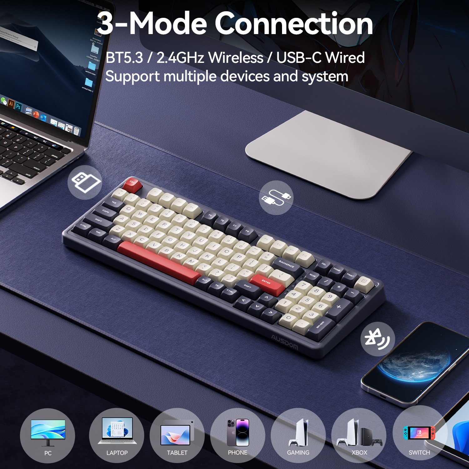 AUSDOM Wireless Bluetooth Mechanical Keyboard, BT5.3/Type-C/2.4G Tri-M