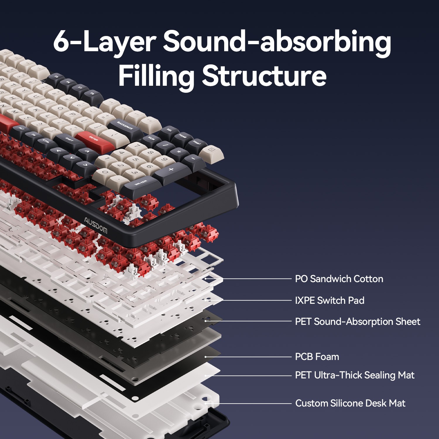 • Low Latency & Tactile Switches: Experience a distinct, responsive key feel with genuine tactile switches, delivering clear feedback. Paired with AUSDOM's proprietary DSP ultra-low latency technology, the keyboard achieves an industry-leading 2ms response time. Designed for competitive gamers, content creators, and professionals who demand both precision feedback and real-time performance in fast-paced scenarios.